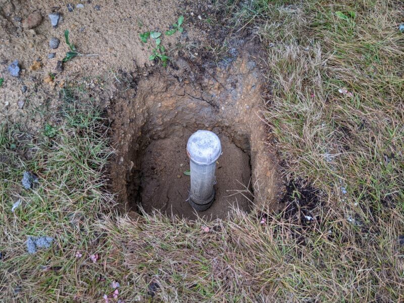 こちらは、打ち込み井戸の工事をさせていただいた現場です。 このようなパイプを地中に入れていきます。 水があがる…