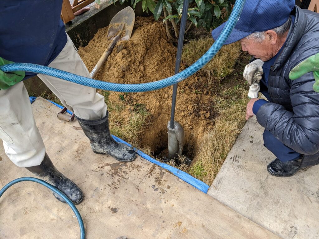 2025.10.20 井戸 打込井戸工事 井戸 水まわり新設 住宅 こちらは、打ち込み井戸の工事をさせていただいた現場です。 このようなパイプを地中に入れていきます。 水があがるように、掃除なども施します。 完成後の状況です。 管まわりを埋めてしまえば、地中から管が出ているだけの状態に…。 このあと、井戸の管にポンプを接続して、水を出すという流れになります。 このやり方は浅井戸になりますので、設置できる場所が、かなり限定されるので、万人にお勧めできないのが本当に残念です (>_<) でも取り付けできるお宅には、消雪装置を安く設置できるということにもなるので、悪くはないです!