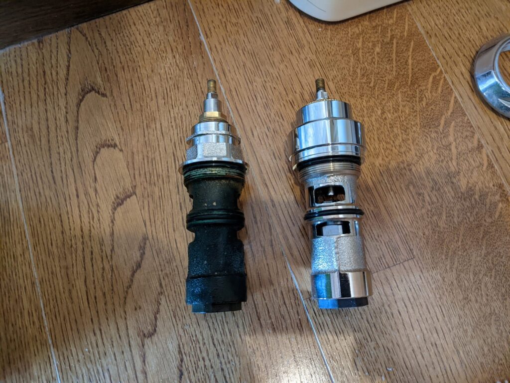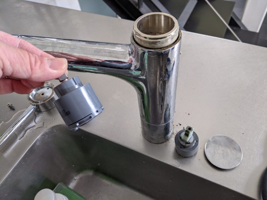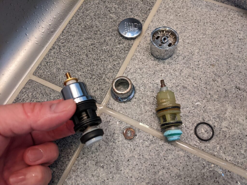 ちょっと特殊な水栓ですが、こちらはシャワーと吐水の切替の部品を取り替えました。